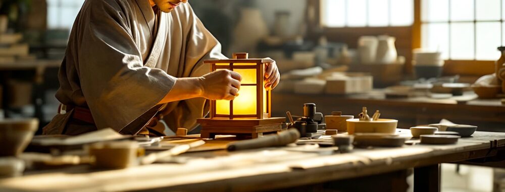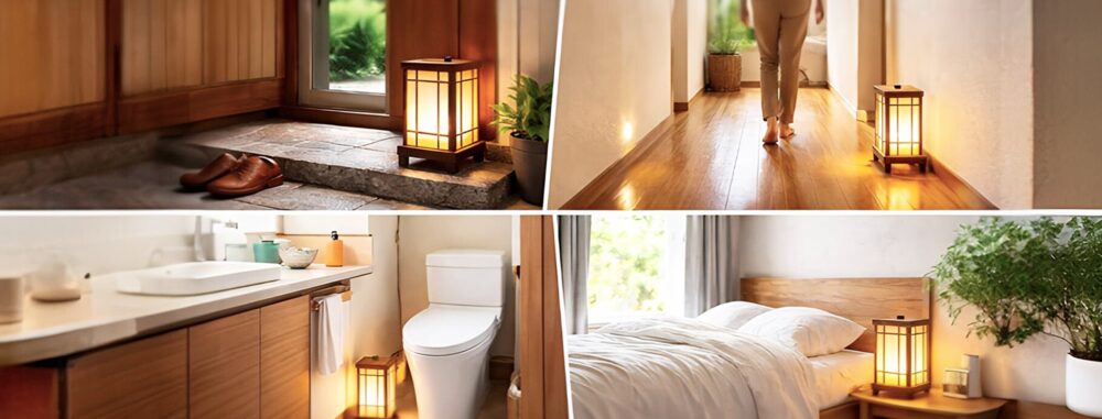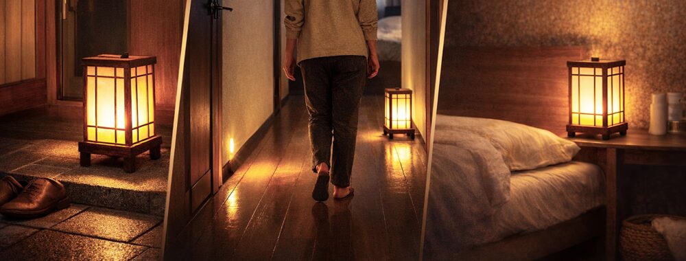 灯り作家オリジナルデザインの人感センサー付き行灯。好みの灯りを見つけてみてください。