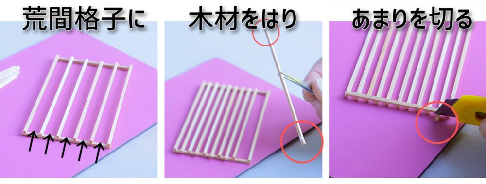 ▶︎格子の左右にボンドを塗って