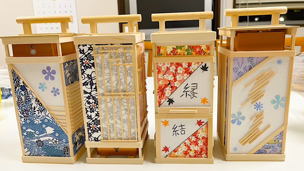 ①灯りに、素材を貼り